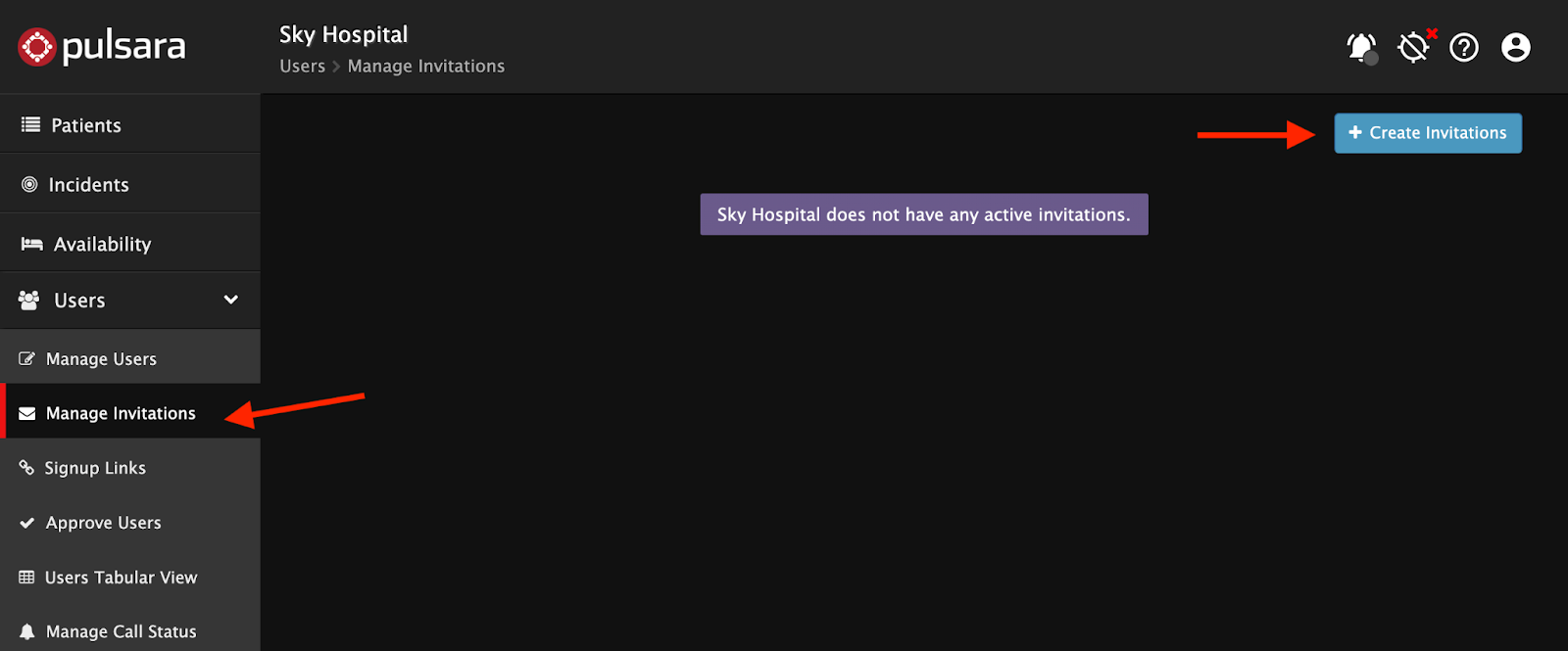 To invite the new clinician to your facility, click on Manage Invitations from the navigation menu and choose Create Invitations on the next page.