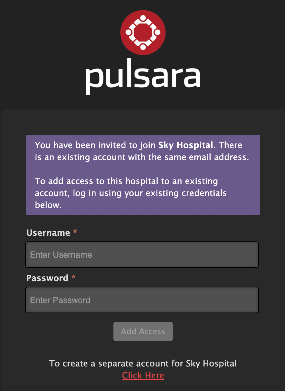 - The email address in the account invitation must match the email address used for their existing Pulsara account