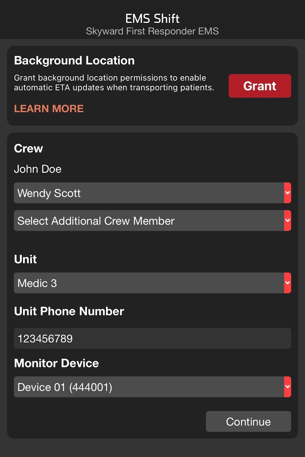 If multiple crew members and devices are on scene and participating in the patient channel, the device that is with the crew transporting the patient can take over Auto ETA updates.