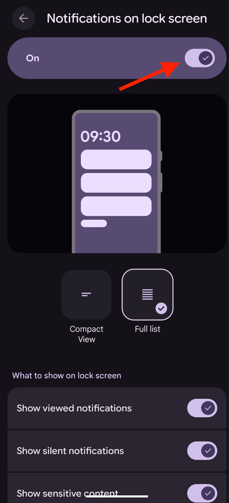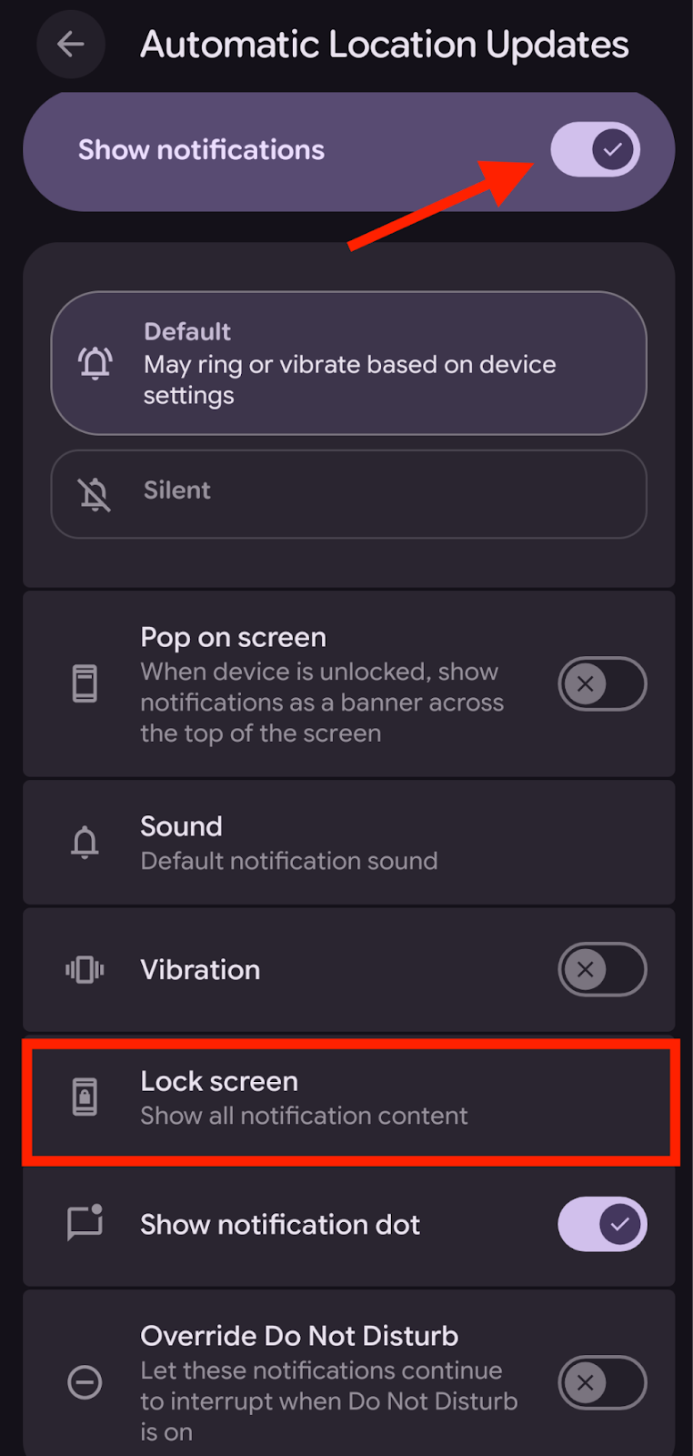 On Android, Notifications on the lock screen will need to be allowed in order to view Live Updates from the lock screen. Depending on the Android Device, navigate to: Device settings > Display and Touch > Lock Screen