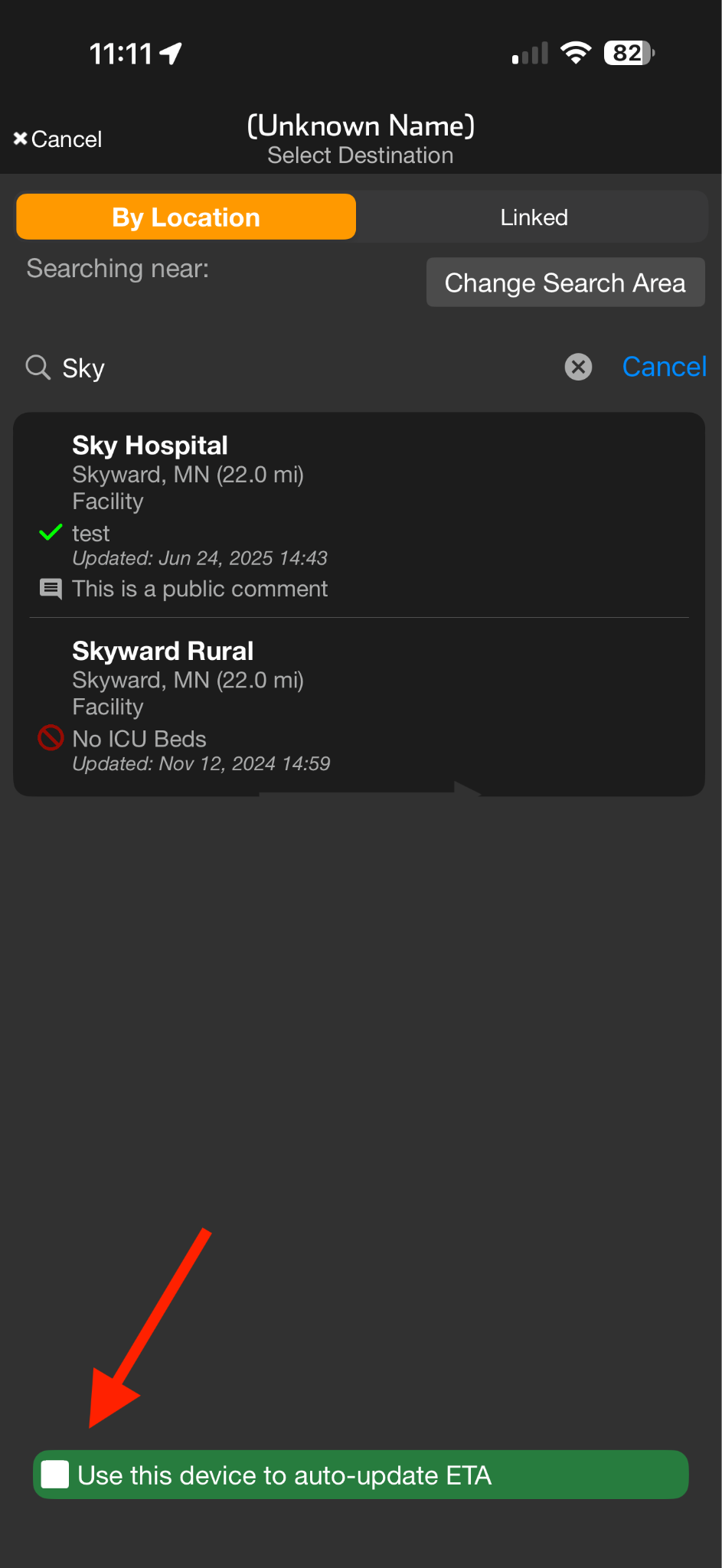 When creating a Patient Channel for EMS Users, upon destination selection, crews will now have the option to “Use this device to auto-update ETA”.