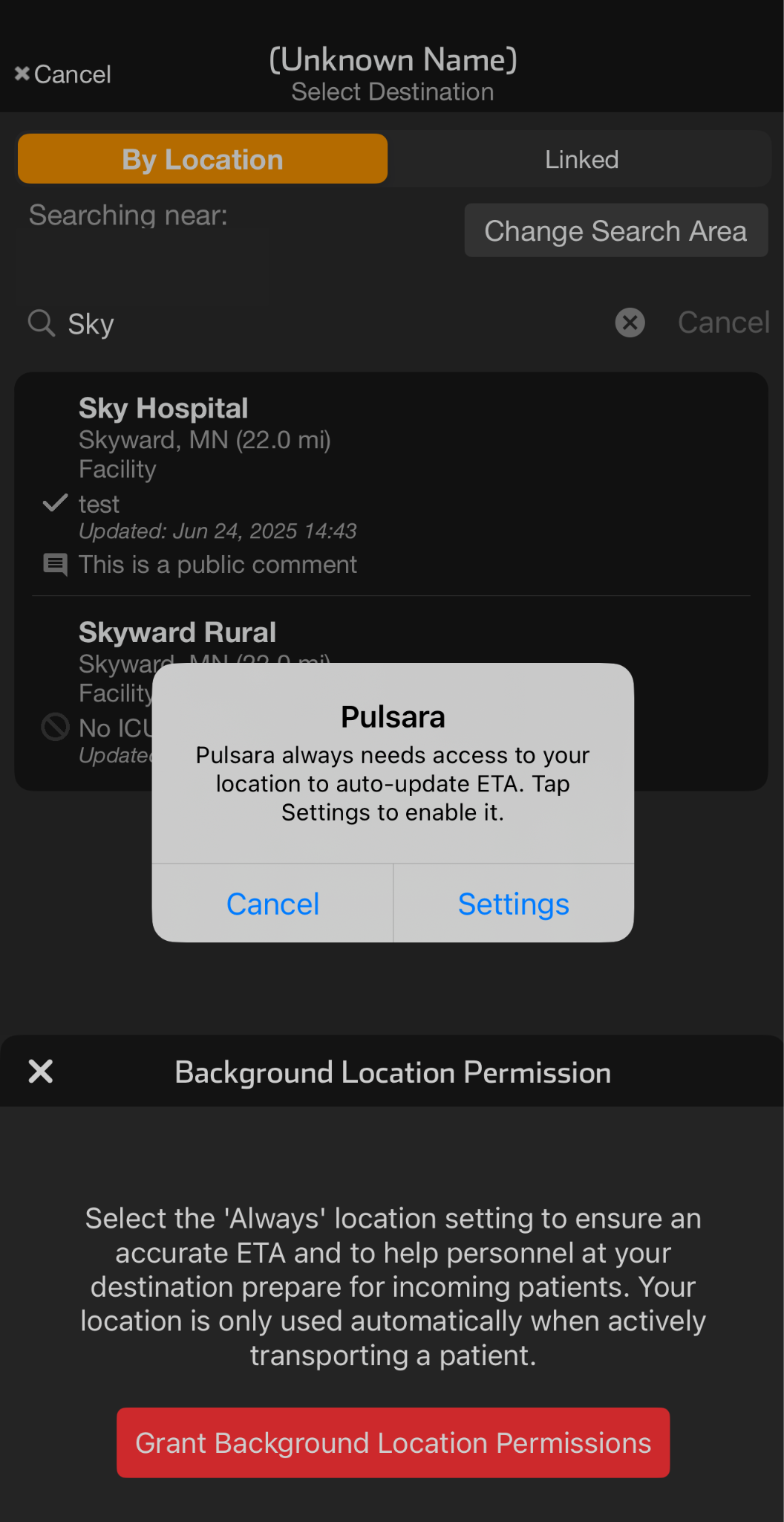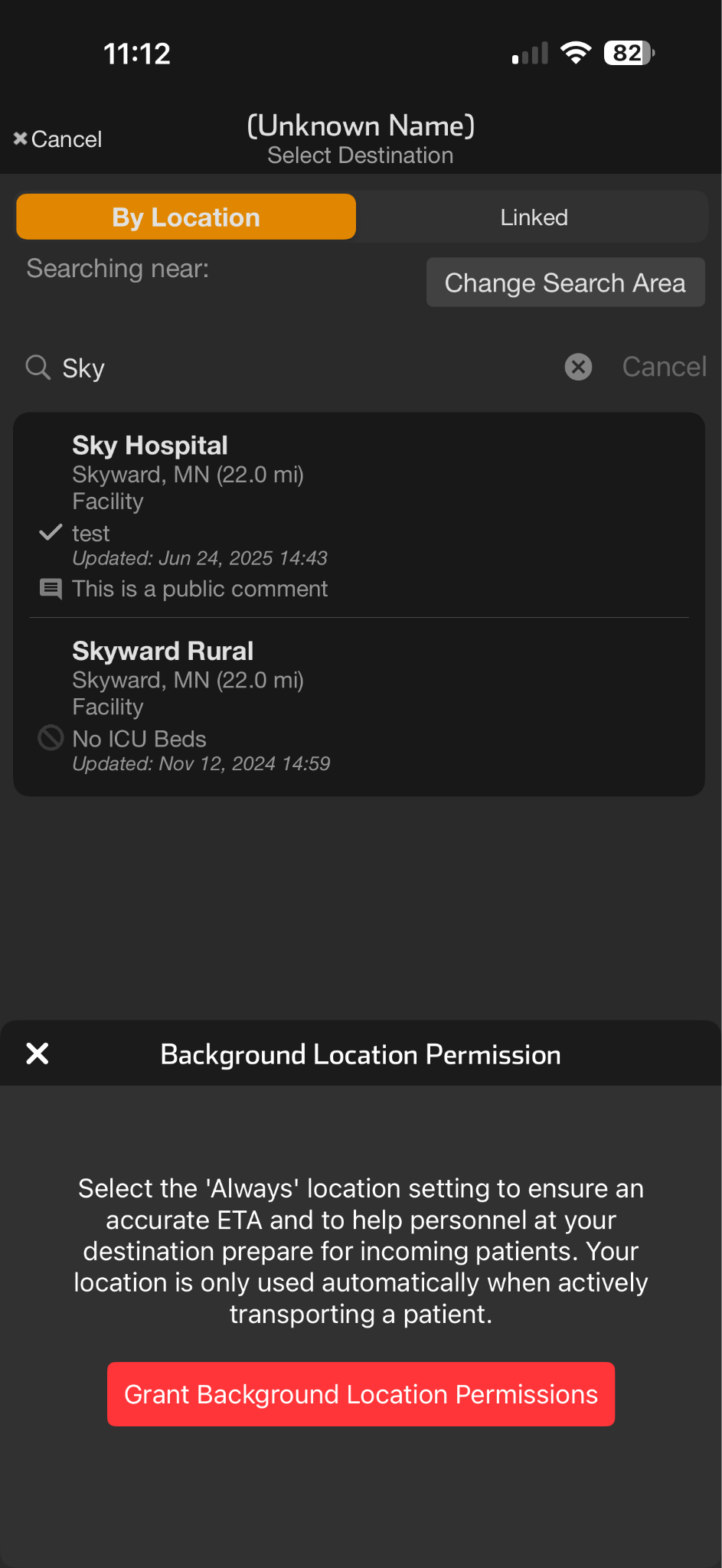 Note: Your location is only used automatically when actively transporting a patient and can be disabled at any time.