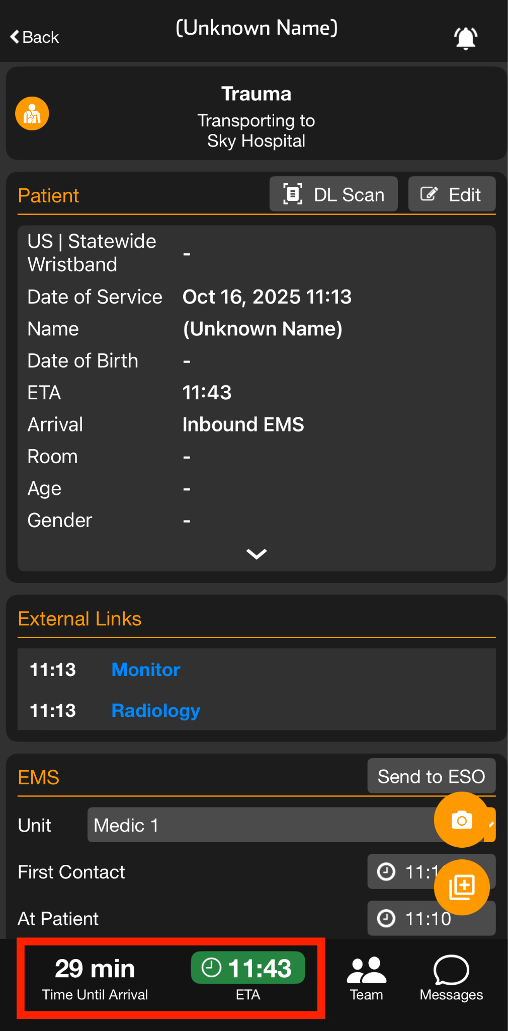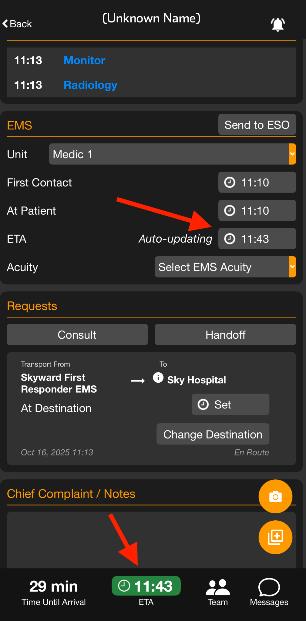 Note: Auto ETA does not automatically set ED Arrival Time. Only Hospital Users are able to set ED Arrival.