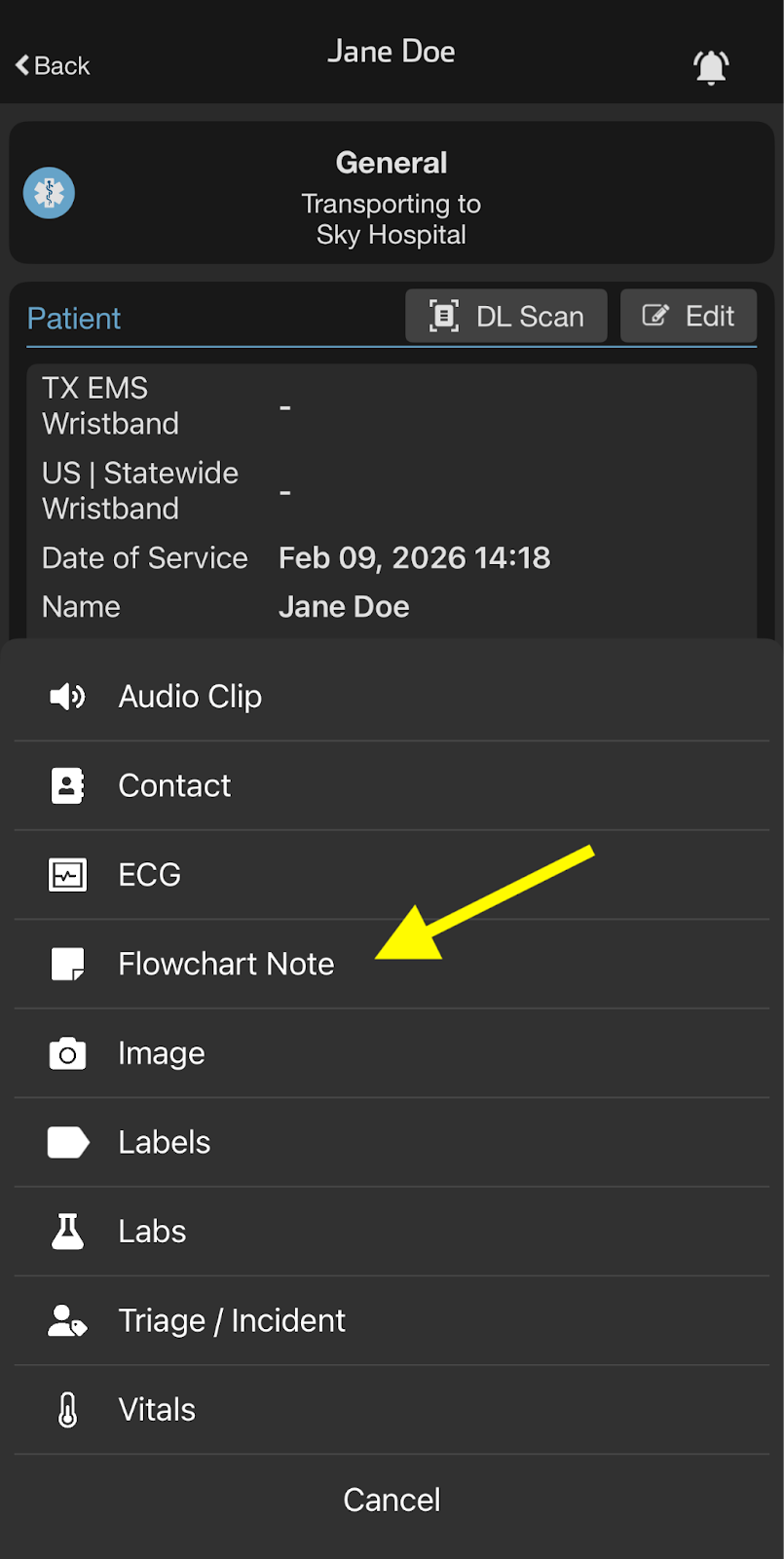 To add a Flowchart Note, open any patient channel and tap the “+” FAB icon.