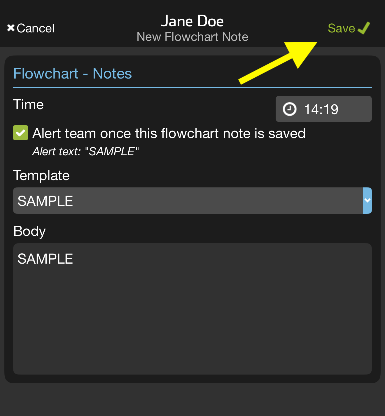 If the “Alert teams once this note is saved” checkbox is checked for this Note, all care team members will receive a push notification.