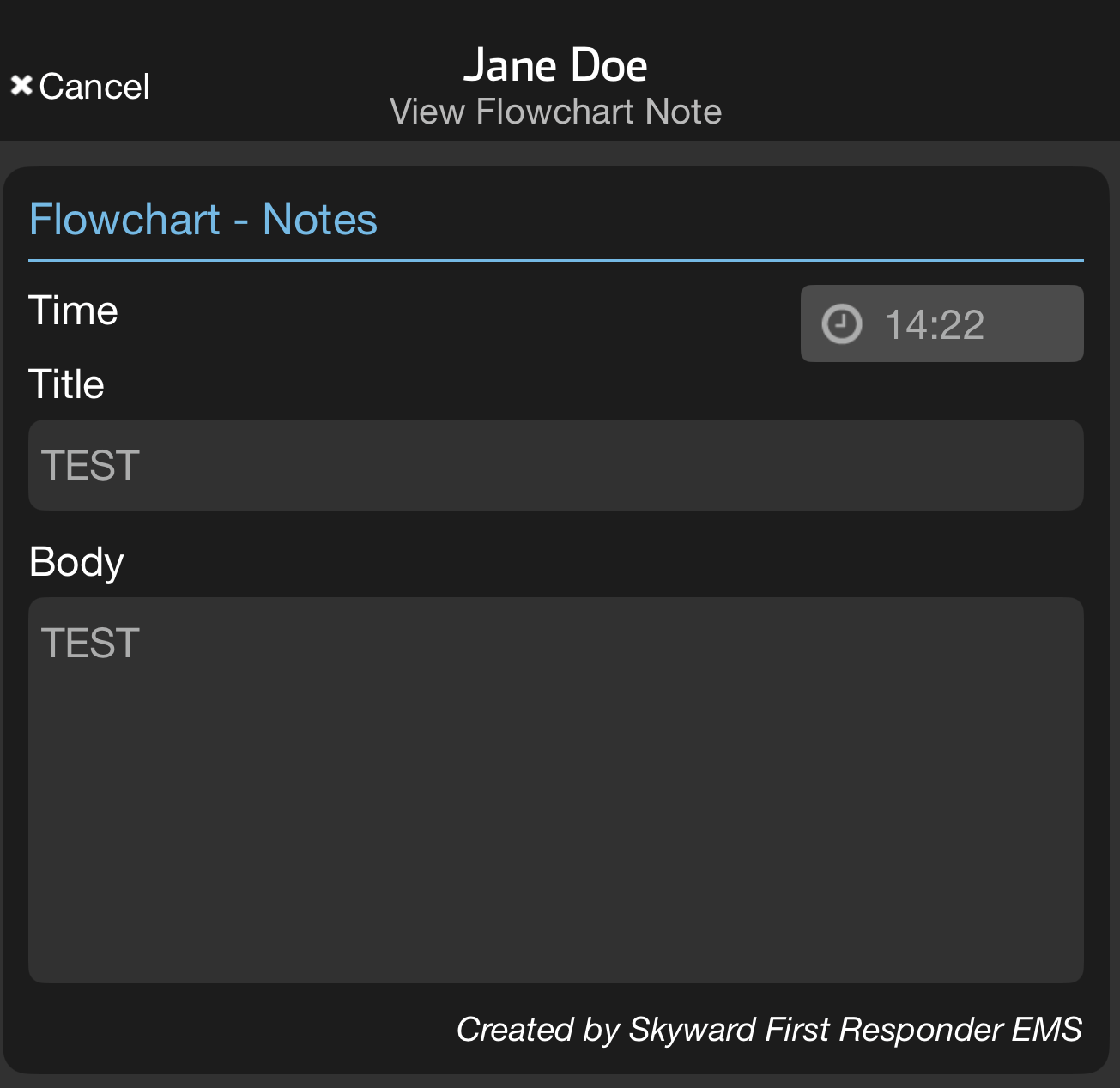 A time field displays with the current time, but may be adjusted to capture the correct time for the note.