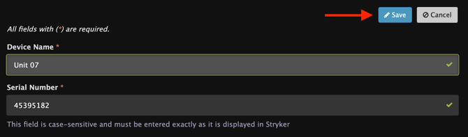 Step 6: To configure a Stryker monitor, you will need the monitor’s serial number, and you will need to decide on a user-friendly device name for the unit.