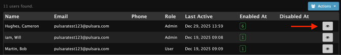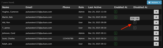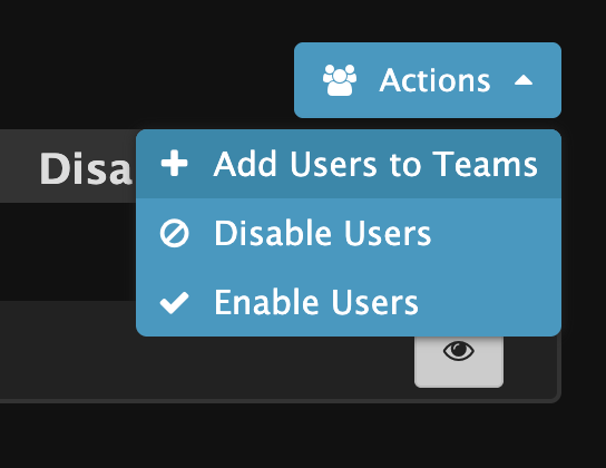 To disable users, select the Actions Icon and Disable Users.