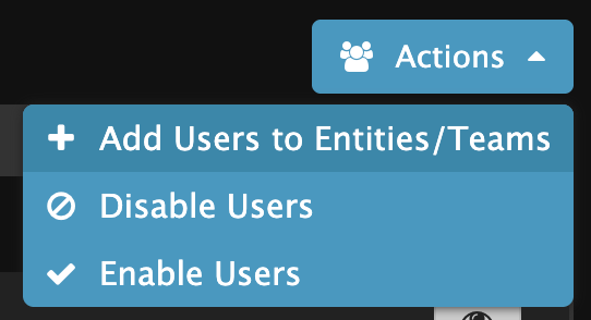 To add users to additional entities, select the Actions Icon and + Add Users to Entities/Teams